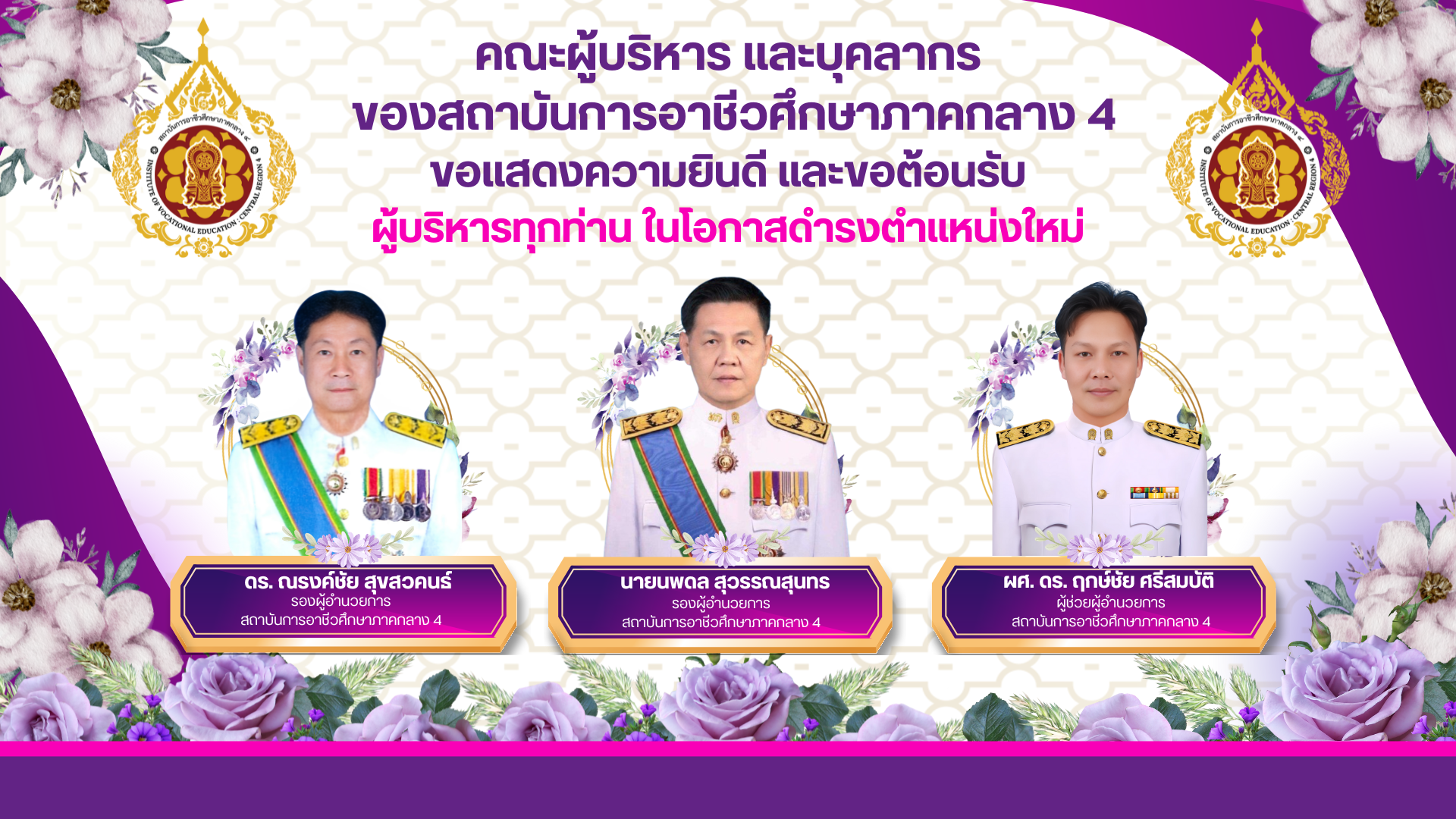 คำสั่งสภาสถาบันการอาชีวศึกษาภาคกลาง 4 เรื่อง แต่งตั้งรองผู้อำนวยการสถาบันและผู้ช่วยผู้อำนวยการสถาบัน ของสถาบันการอาชีวศึกษาภาคกลาง 4